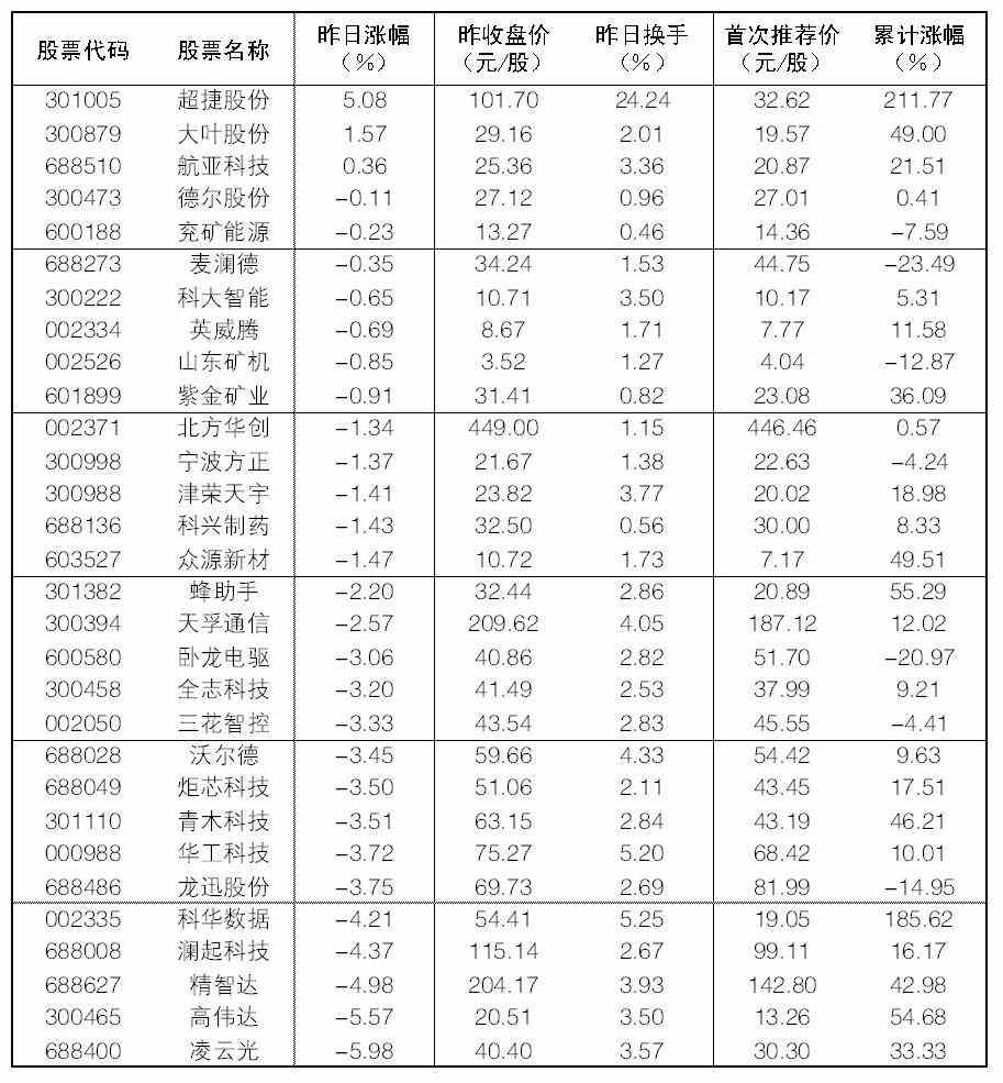 大眾30指數成份股中,15日逆市上漲的是超捷股份、大葉股份、航亞科技,漲幅分別為5.08%、1.57%和0.36%;跌幅榜上,凌云光、高偉達、精智達、瀾起科技、科華數據等跌幅居前。