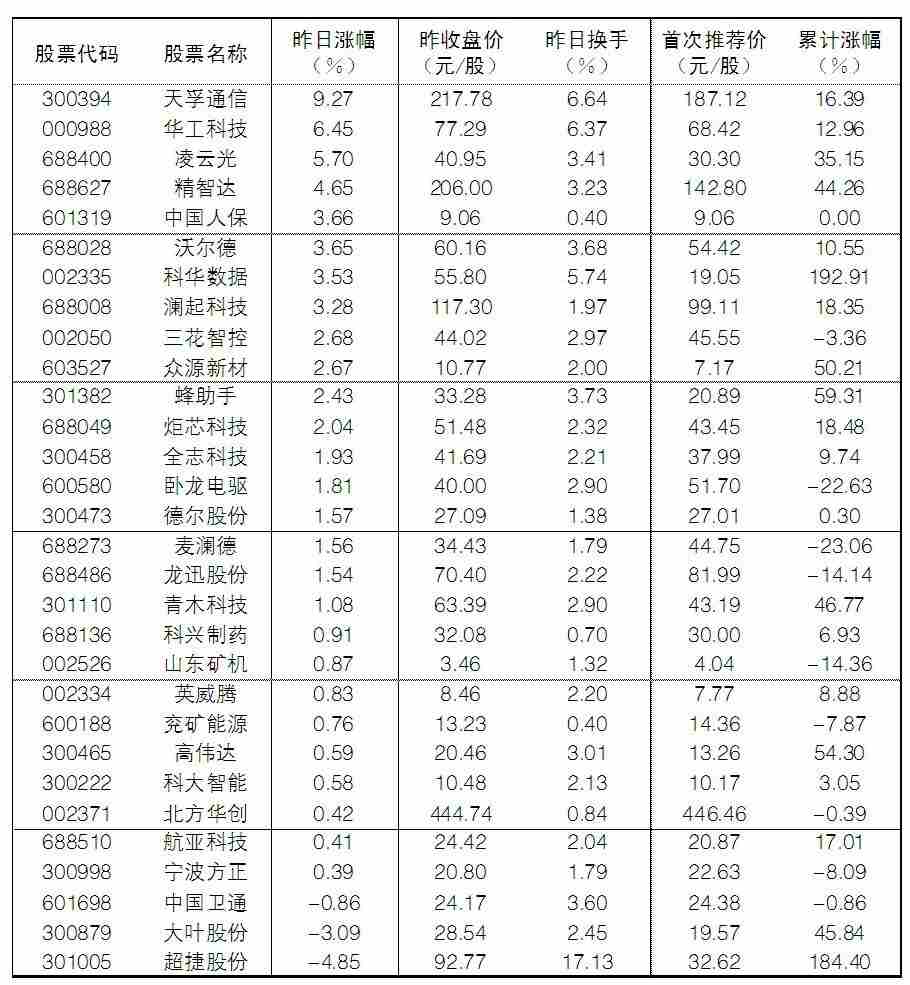 大眾30指數成份股中,17日漲幅前五位的分別是天孚通信、華工科技、凌云光、精智達、沃爾德,漲幅分別為9.27%、6.45%、5.70%、4.65%和3.65%;跌幅榜上,超捷股份、大葉股份、中國衛通跌幅居前。