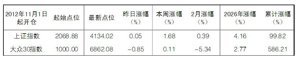 本報綜合消息 周四,滬深A股維持強勢整理,玻纖、電網設備、航海裝備等板塊領漲,影視院線、焦炭、酒店餐飲等板塊走勢較弱。2月12日,上證綜指上漲0.05%,深證成指上漲0.86%,創業板指上漲1.32%,大眾30指數下跌0.85%。