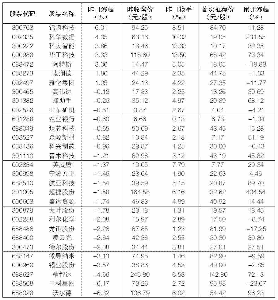大眾30指數(shù)成份股中,9日漲幅前五位的分別是錦浪科技、科華數(shù)據(jù)、科大智能、華工科技、阿特斯,漲幅分別為6.01%、4.05%、3.86%、3.33%和3.06%;跌幅榜上,沃爾德、中科星圖、精智達(dá)、錫業(yè)股份等跌幅居前。