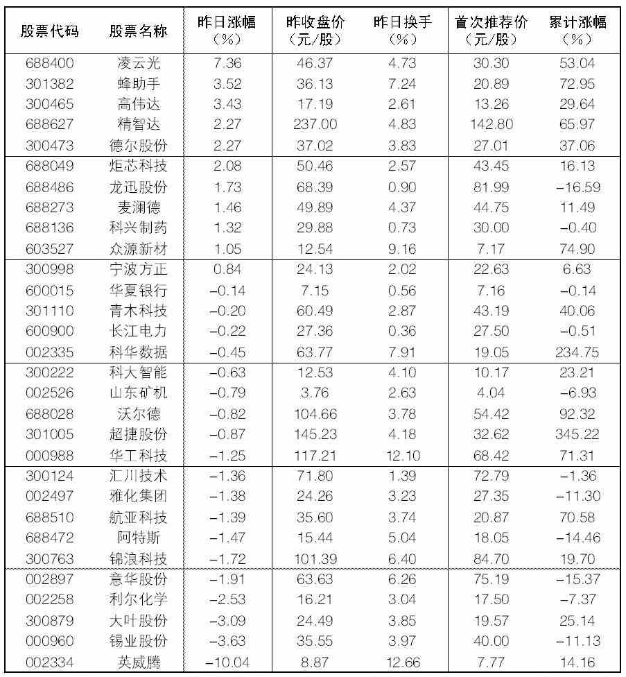 大眾30指數(shù)成份股中,16日漲幅前五位的分別是凌云光、蜂助手、高偉達、精智達、德爾股份,漲幅分別為7.36%、3.52%、3.43%、2.27%和2.27%;跌幅榜上,英威騰、錫業(yè)股份、大葉股份、利爾化學等跌幅居前。