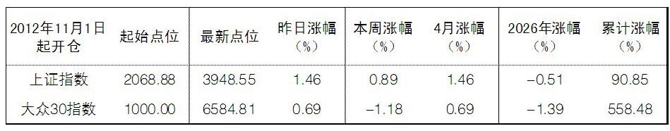 2026年4月1日“大眾30”成份股報告
