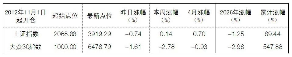 2026年4月2日“大眾30”成份股報告